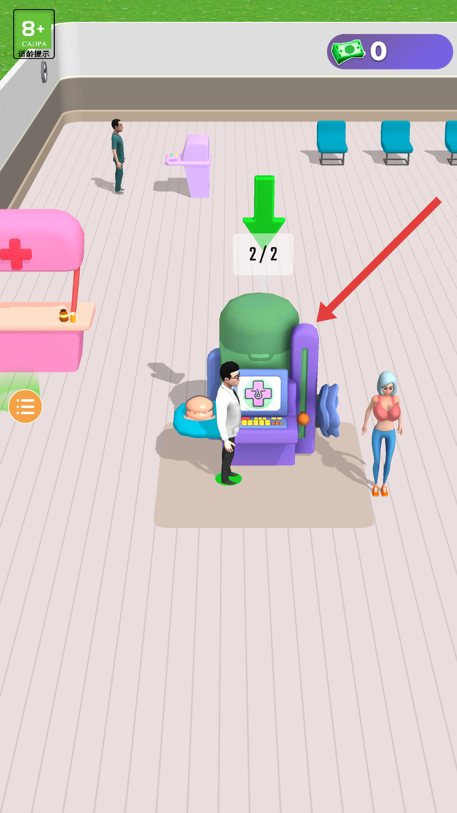 3、成功為患者治療后,會獲得綠色鈔票作為獎勵,可在醫院場景中收集這些鈔票,積累資金用于醫院建設。