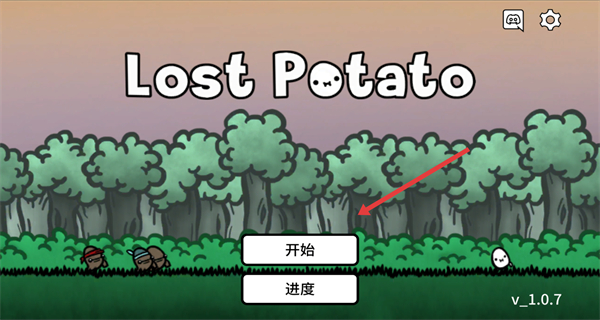 1、主界面點擊開始按鈕進入游戲,了解進度按鈕用于存檔查看,提前熟悉界面功能為操控角色應對怪物挑戰,開啟土豆冒險之旅。