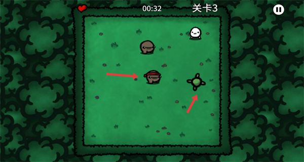 4、關卡3面對多樣怪物,優先處理帶紅帶的快速敵人再應對普通怪,借助場景陷阱分批次擊打,留意左上角愛心血量,避免被圍穩步清理推進。