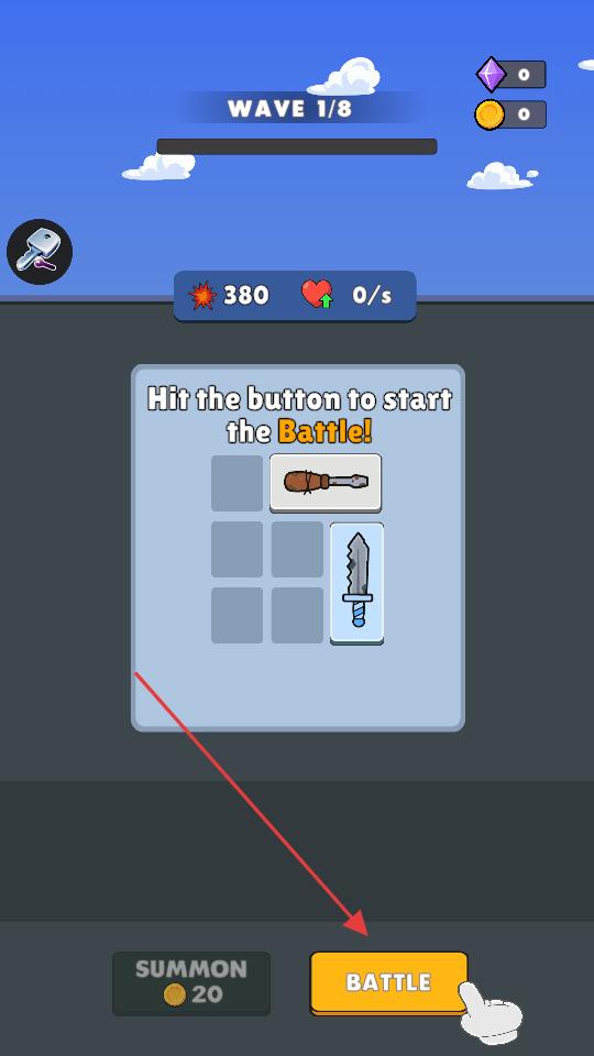4、完成武器放置與合成后,點擊下方的BATTLE按鈕,開啟戰斗,游戲隨即進入戰斗階段,可使用合成后的武器參與對戰。