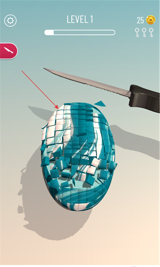 1、玩家下載游戲進入游戲關卡能看到一塊帶有特定造型的肥皂,點擊屏幕操控刀具,開始對肥皂進行切割。
