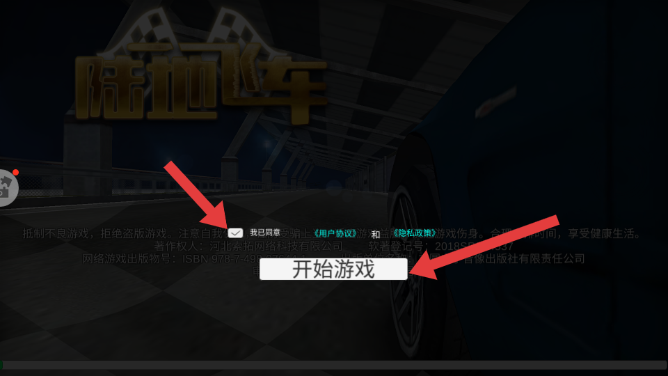 1、勾選已同意用戶協議和隱私政策,點擊開始游戲,進入游戲的初始界面。