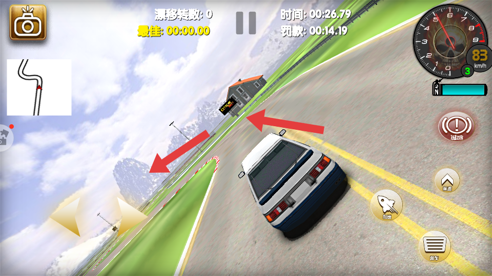 4、在賽道駕駛時,留意左側路線圖,控制車輛方向,利用加速等功能,同時注意時間與罰款,爭取好成績。
