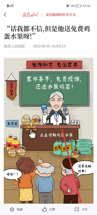 3、在資訊詳情頁閱讀文章內容,還可進行收藏點贊等互動等,我們可以點擊下方的分享按鈕。
