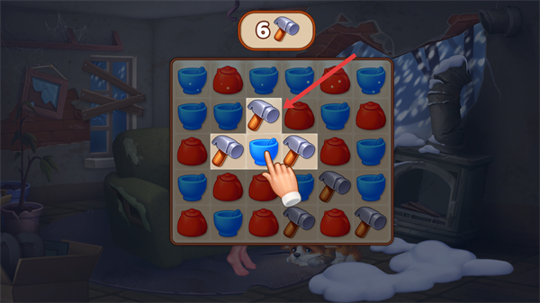 1、游戲里通過點擊錘子道具,消除對應的物品,完成消除任務,推進游戲進程。