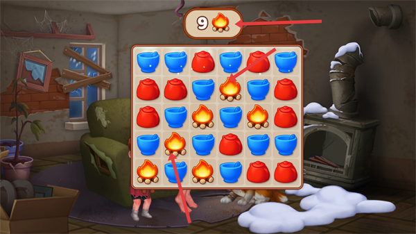 2、還能利用火焰道具,消除指定的物品,按照要求消除,朝著關卡目標前進。