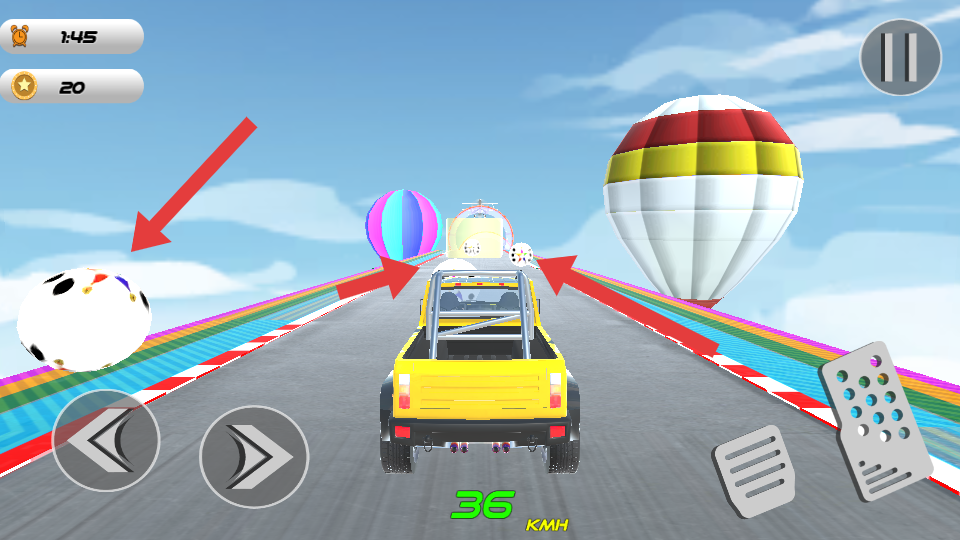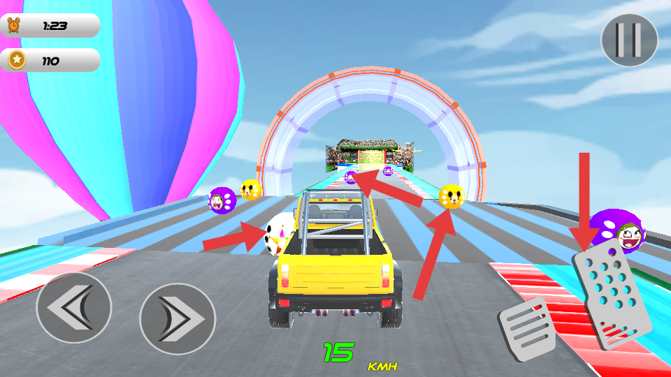 3、繼續在賽道行駛,會遇到帶有表情的彩色小球,需靈活操控卡車避開它們,同時瞄準前方的目標區域前進。
