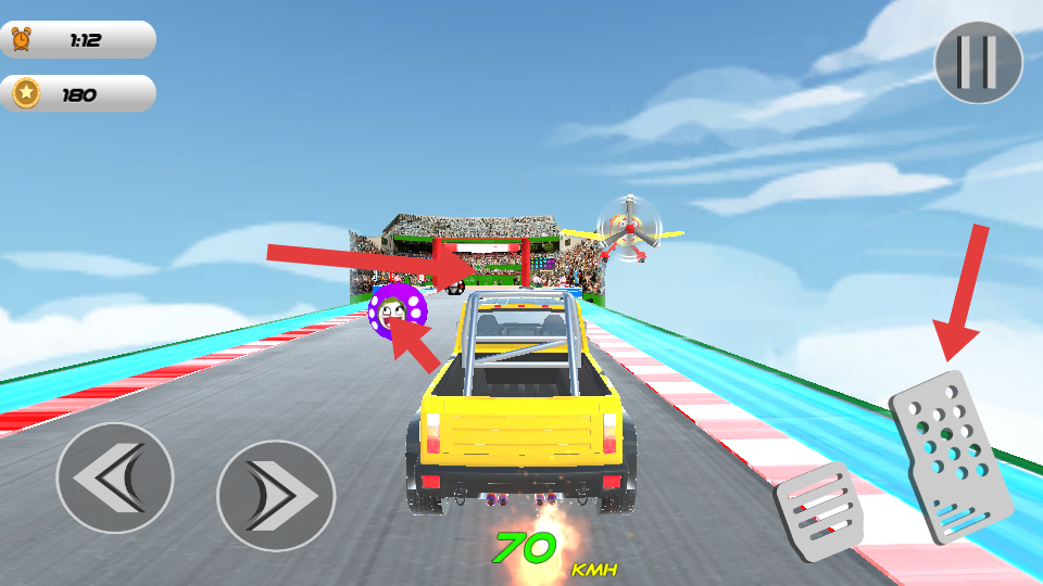 4、接近終點時,保持卡車速度和方向,避開紫色帶表情的球,朝著終點線沖刺,爭取順利完成競速,獲得好成績。