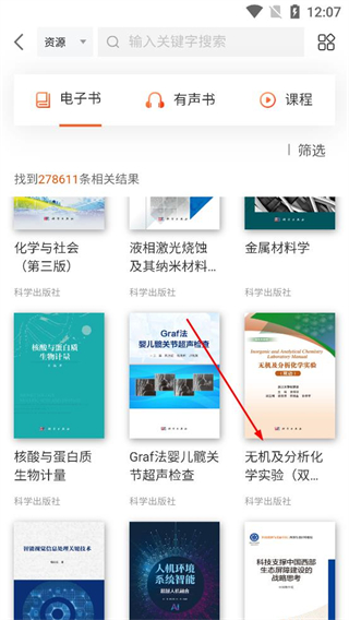 3、在資源頁面可切換電子書、有聲書等分類,瀏覽相關資源,選擇感興趣的書籍,點擊進入該書籍的詳情頁面。