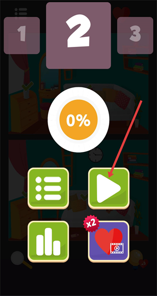 1、玩家點擊主界面下方綠色播放鍵,即可進入對比找茬模式,開啟一場與時間競速的找茬之旅。