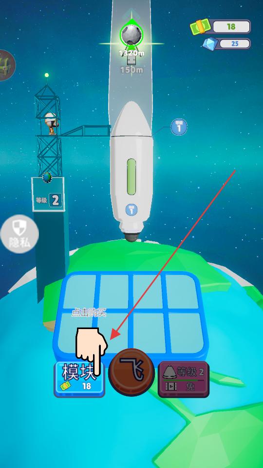 1、在火箭準備界面點擊模塊按鈕,消耗對應的貨幣購買模塊,為火箭裝配做好準備,此時能看到模塊欄的數量會相應增加。