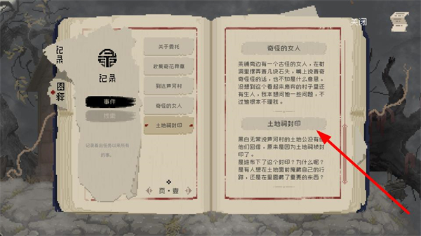 3、在記錄界面切換內容,可查看土地祠印記等信息,這些內容會補充劇情細節,幫助梳理當前的探索方向。