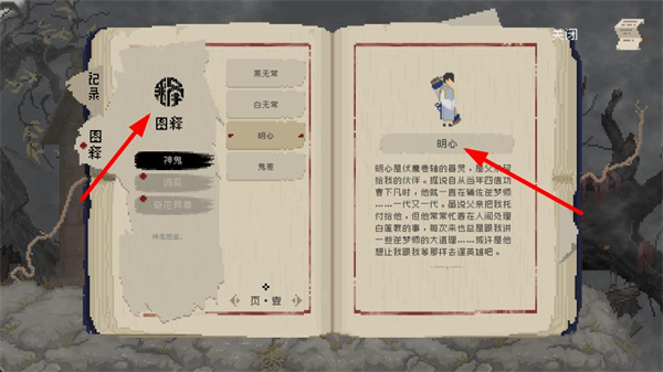 4、切換到圖釋界面能查看不同角色的介紹,比如明心的相關信息,了解角色背景有助于理解后續的互動劇情。