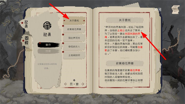 2、打開記錄界面可查看各類信息,比如關于委托的內容,閱讀這些信息能了解劇情背景,獲取解謎相關的線索。