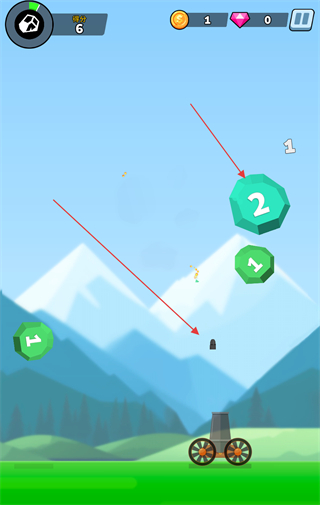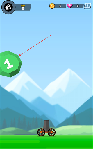 2、進入游戲后玩家會看到帶有數字的綠色石塊從上方落下,操控下方的炮臺發射炮彈,擊碎這些石塊。
