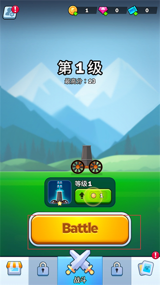 1、在游戲主界面查看當前游戲等級和最高分數,點擊圖標標記Battle按鈕,進入戰斗場景準備開始游戲。