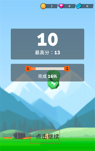 4、當一輪戰斗結束,會顯示本次獲得的分數以及完成進度,點擊圖標點擊繼續按鈕,可以重新開始新的一輪挑戰。
