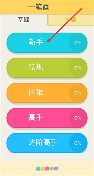 1、進入游戲擴展板塊,選擇新手難度關卡,開啟一筆畫之旅,此階段專為初學者設計,可逐步熟悉游戲規則與操作邏輯,開啟基礎繪圖挑戰。