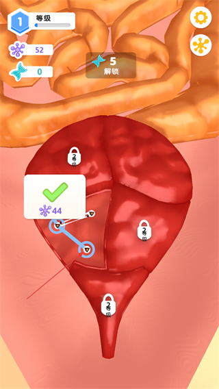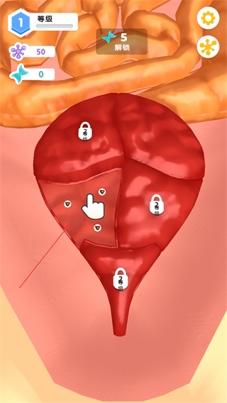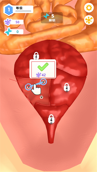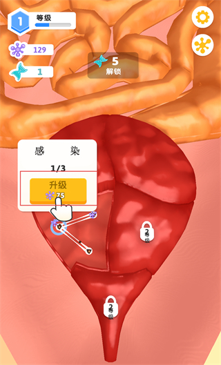 1、在游戲界面中會看到人體器官的細胞區域有部分處于鎖定狀態,通過積累即可解鎖。