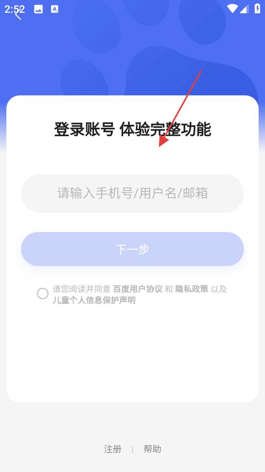 2、登錄頁,提示登錄賬號體驗完整功能,輸入手機號等,勾選協議后點下一步,也可注冊。