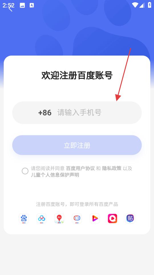 3、注冊頁,歡迎注冊百度賬號,輸手機號,勾選協議后點立即注冊,注冊后可登錄百度全系產品。