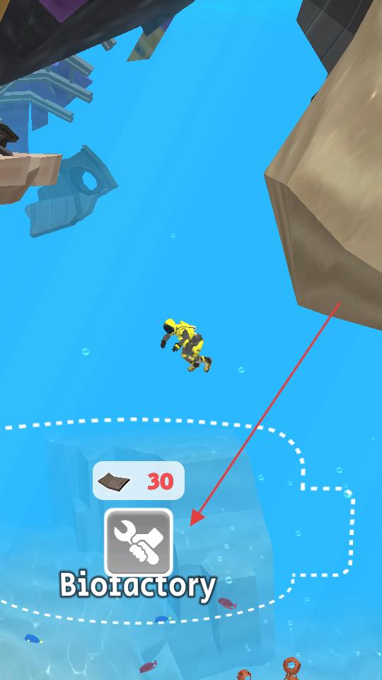 2、當遇到標注Biofactory的區域時,靠近該區域,點擊按鈕消耗對應的材料數量,進行互動操作,獲取區域內的資源。