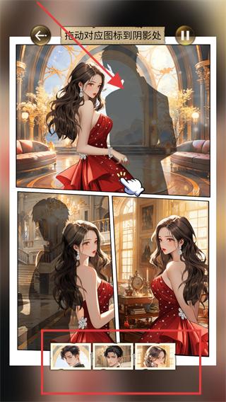 3、按照任務提示完成相應操作,根據拖動對應圖標到陰影處的提示,把下方的人物頭像圖標拖動到指定的陰影位置。