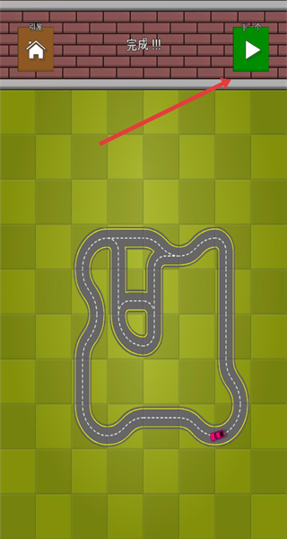 3、道路拼接完整后,點擊界面右上角綠色播放按鈕紅色小車沿路線行駛,路線通順無斷點即可順利通關解鎖后續關卡。