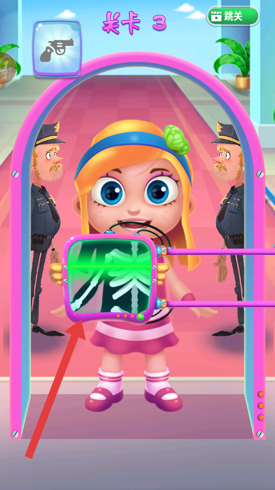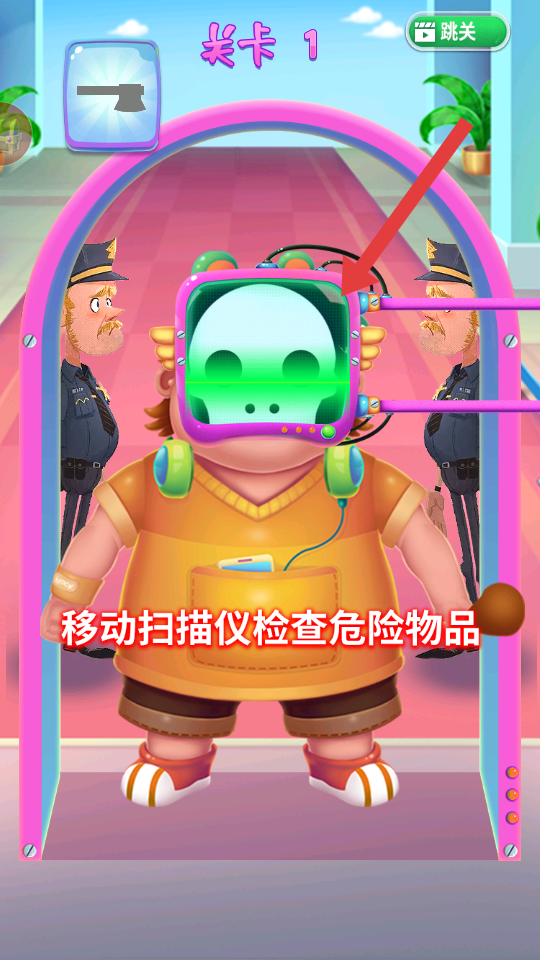 2、在關卡1,移動掃描儀,對角色進行掃描,檢查是否攜帶危險物品,確保安檢流程順利進行。