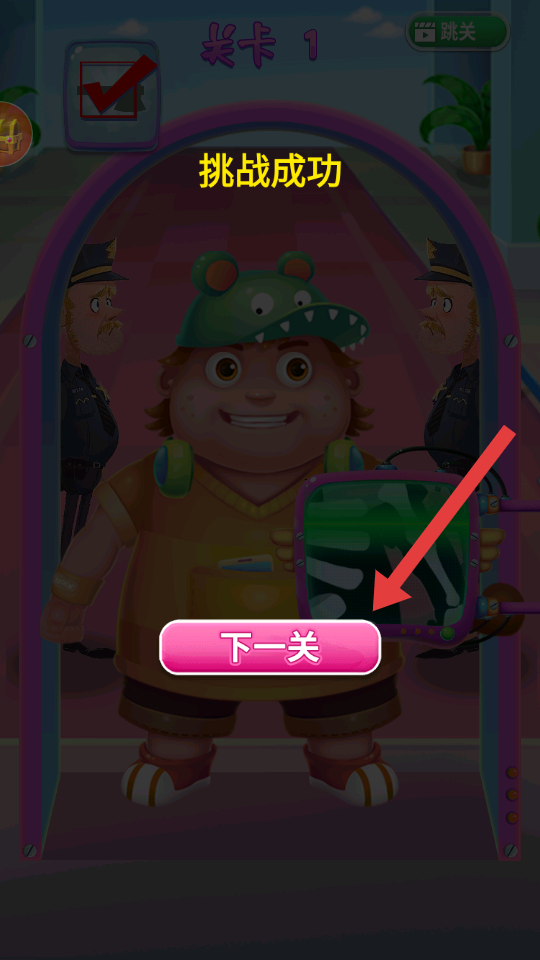 3、關卡1挑戰成功后,點擊下一關按鈕,進入后續關卡,繼續進行安檢相關的游戲挑戰。