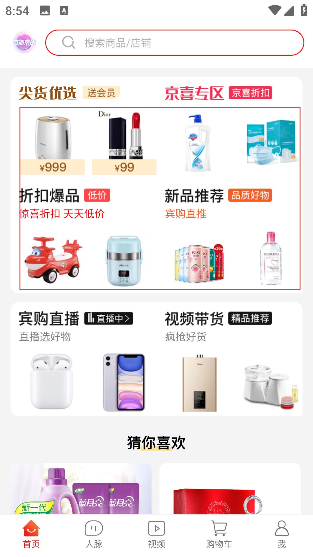 2、在提示頁點同意,進首頁,看尖貨優選、京喜專區,選心儀商品,參與直播、視頻帶貨。