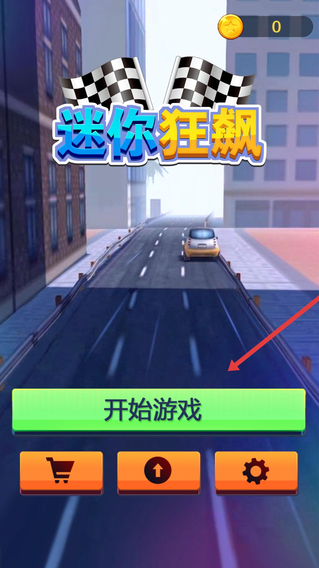 1、進入游戲,能看到帶有賽車元素的標題界面,上方顯示金幣數量為0,點擊開始游戲,即可開啟賽車挑戰之旅。