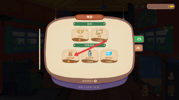 4、前往商店界面,能看到可購買的魚餌、特殊物品等,選擇合適的物品購買,助力釣魚之旅。