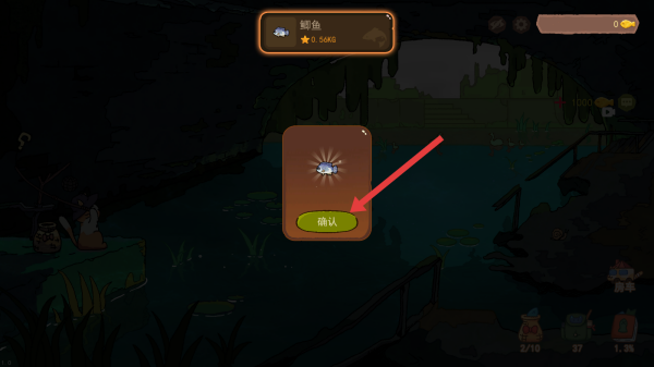 2、釣到魚后,會彈出顯示魚種類如鯽魚和重量的提示框,點擊確認,完成本次釣魚收獲。