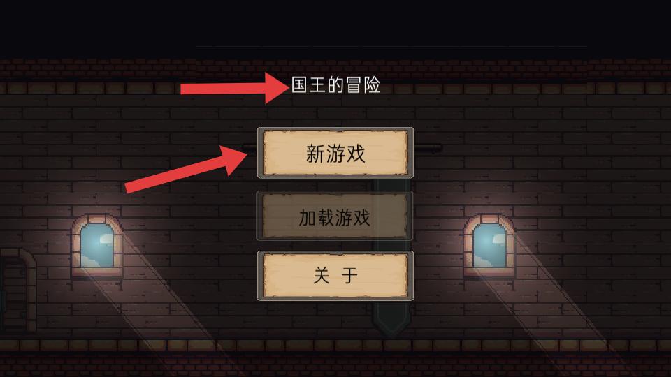 1、進入游戲,能看到國王的冒險標題界面,有新游戲,加載游戲,關于等選項,點擊新游戲即可開啟國王的冒險之旅。