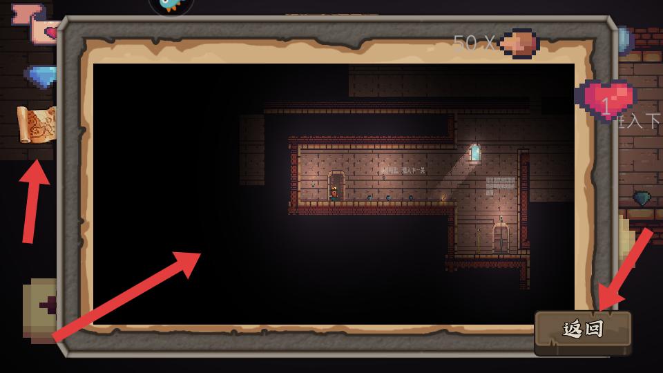4、關卡場景中可查看地圖等信息,了解場景布局,若想退出當前查看界面,點擊返回按鈕即可回到游戲主場景。
