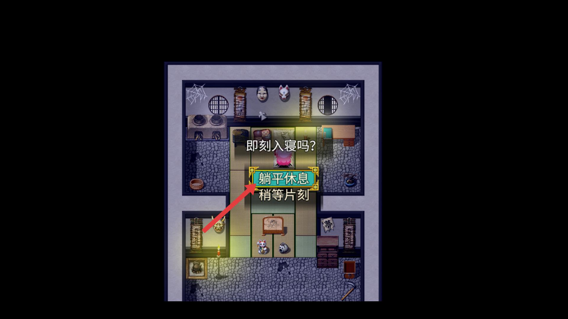 4、當出現即刻入寢嗎的選項時,選擇躺平休息可讓角色休息恢復狀態,若還有事情未完成,可選擇稍等片刻繼續行動。