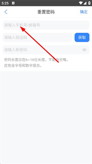 4、進入重置密碼頁面,輸入手機號、郵箱號,獲取并填驗證碼,設置新密碼后點擊確定,完成密碼重置操作。