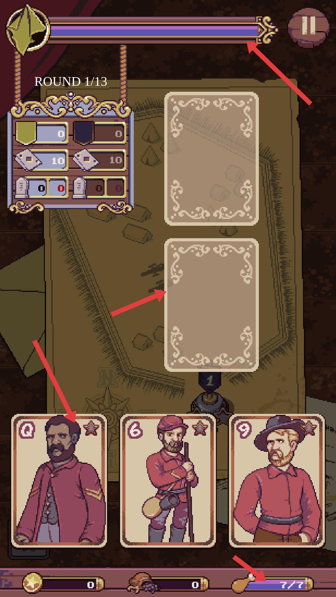 3、戰斗界面,關注上方進度條、回合數,根據手牌,結合敵方情況,選擇合適卡牌上陣,留意下方資源,星星、物資、雞腿,合理運用維持戰力。