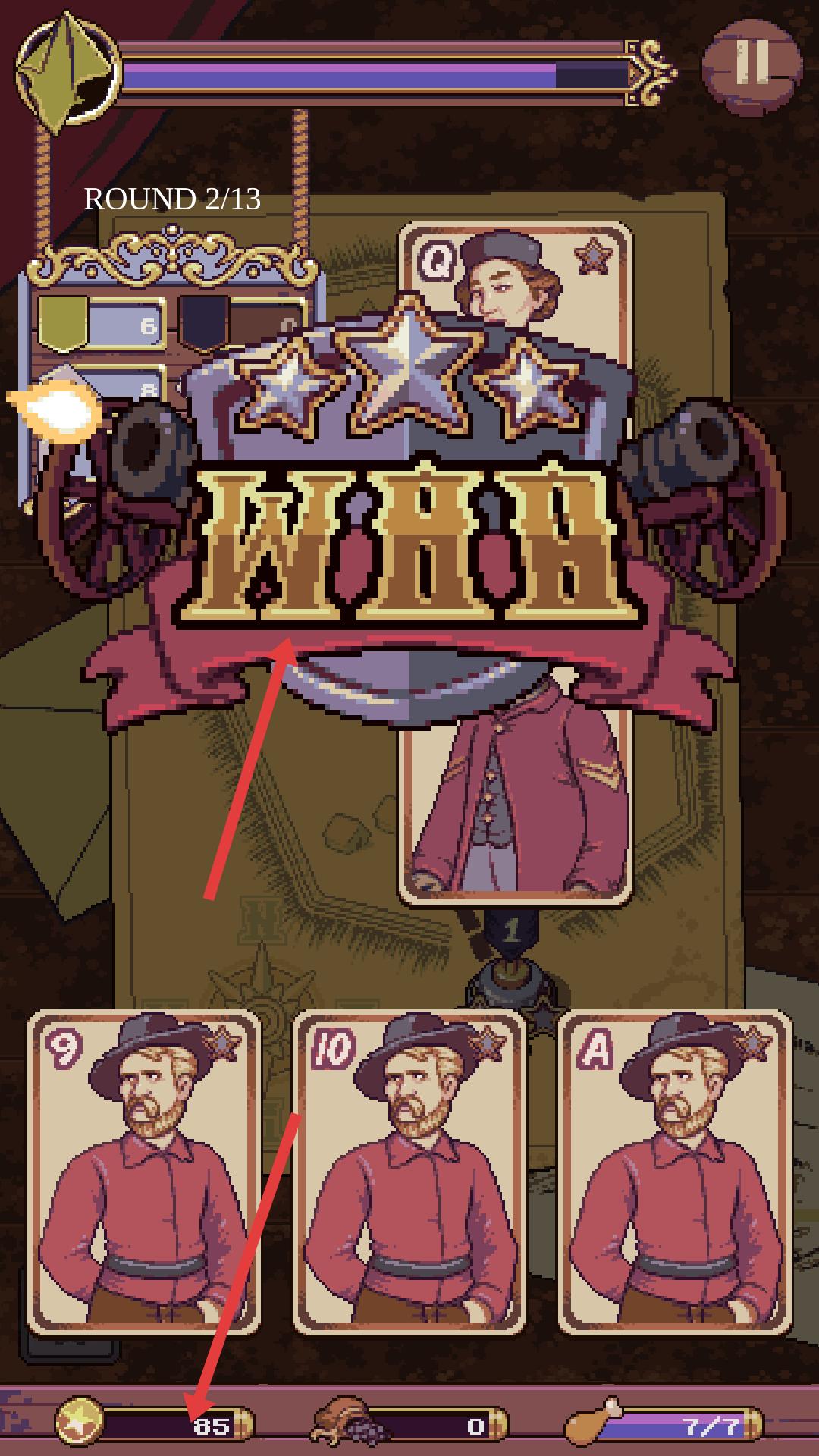 4、戰斗進入ROUND2,觸發WAR判定,根據規則,選擇合適手牌應對,獲勝可積累星星,持續關注回合、資源,策略性出牌,推進戰斗勝利。