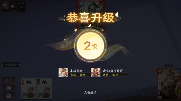 3、升級獲得武將獎勵,提升等級解鎖新武將如黃忠,豐富武將陣容,增強隊伍戰力,助力三國征戰。