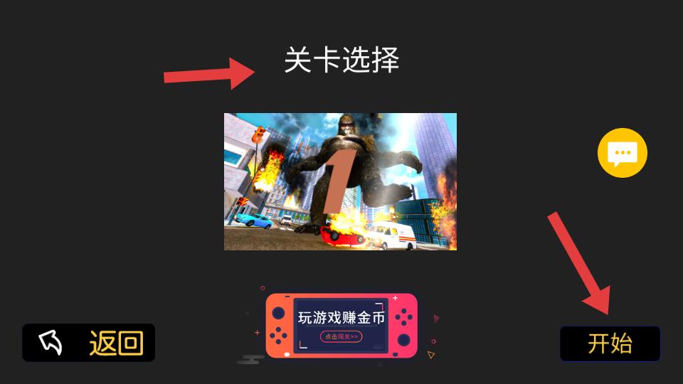 2、在關卡選擇界面,選好關卡后點擊開始,進入任務界面,會顯示如摧毀建筑等任務,點擊開始,進入游戲場景。