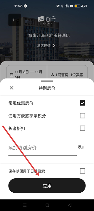2、特別房價板塊,可選擇常規優惠房價、使用萬豪旅享家積分、長者折扣等特別房價類型,點擊應用查看相應房價的酒店。