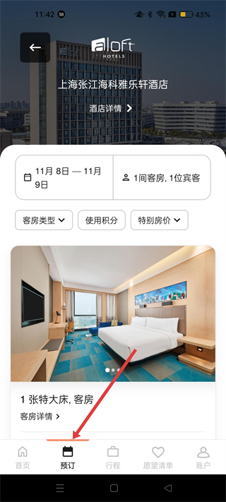4、選擇客房時,可查看客房的詳細信息,包括客房類型、床型、面積等,選擇合適的客房后完成預訂操作。