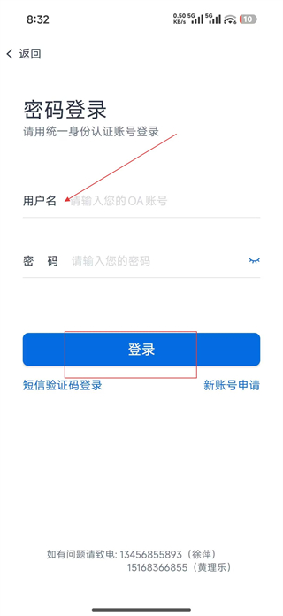 1、打開物產中大集團軟件,進入密碼登錄頁面,輸入OA賬號和密碼,點擊登錄按鈕,完成賬號登錄。