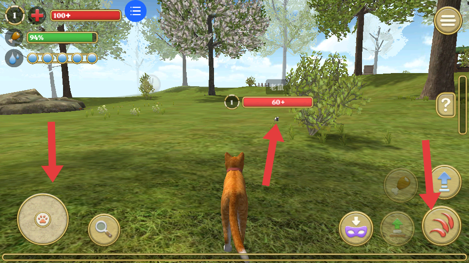 4、找到老鼠后,操控貓咪靠近,點擊右側爪擊按鈕,對老鼠發起攻擊,完成狩獵老鼠的任務,積累游戲進度。