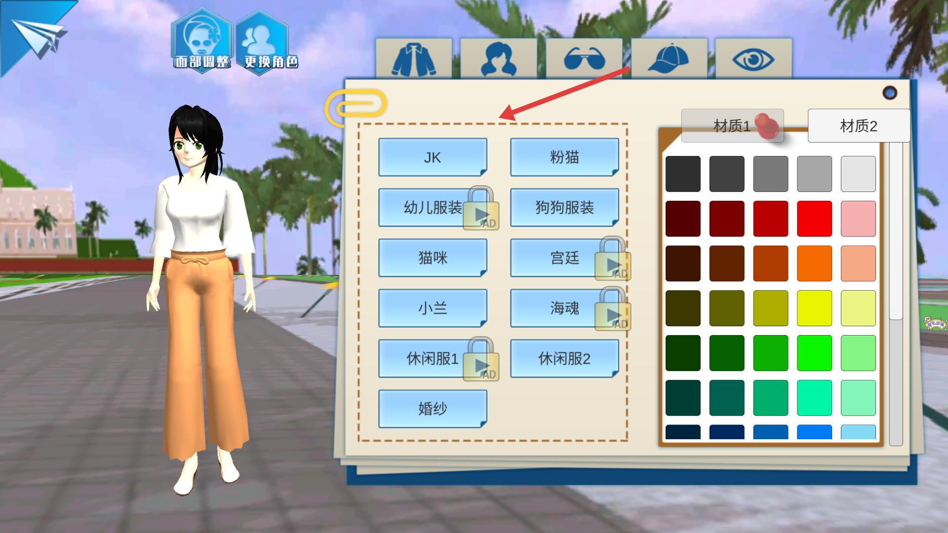 1、可對角色進行面部調整以及更換角色,還能挑選JK、粉貓等不同風格的服裝,搭配喜歡的顏色,打造獨特的角色形象。