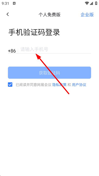 4、若切換到個人免費版,進入手機驗證碼登錄界面,先填寫手機號,勾選協議后點擊獲取驗證碼,即可進行后續的登錄相關操作。