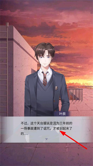 1、了解到天臺因三年前的事故遭詛咒被封的背景,跟隨劇情,開啟校園懸疑解謎的探索之旅。