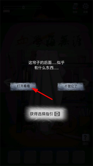 4、遇到簾子后面似乎有東西的場景,選擇打開看看,獲取新的劇情或線索,繼續深入校園懸疑的探索。